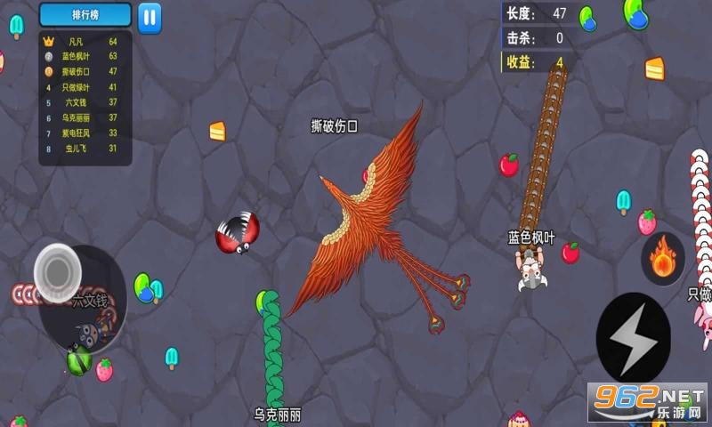 《贪吃蛇多人大乱斗》是一款竞技性比较强的贪吃蛇吞噬游戏,多人大乱斗竞技对决,玩起来更刺激,操作你的蛇在里面疯狂走位,去迟到更多食物让自己变长,但是要小心头上的老鹰,千万不要被老鹰叼走,不然我们前面的努力就会功亏一篑,刺激好玩的贪吃蛇游戏,下载一起来试试吧。