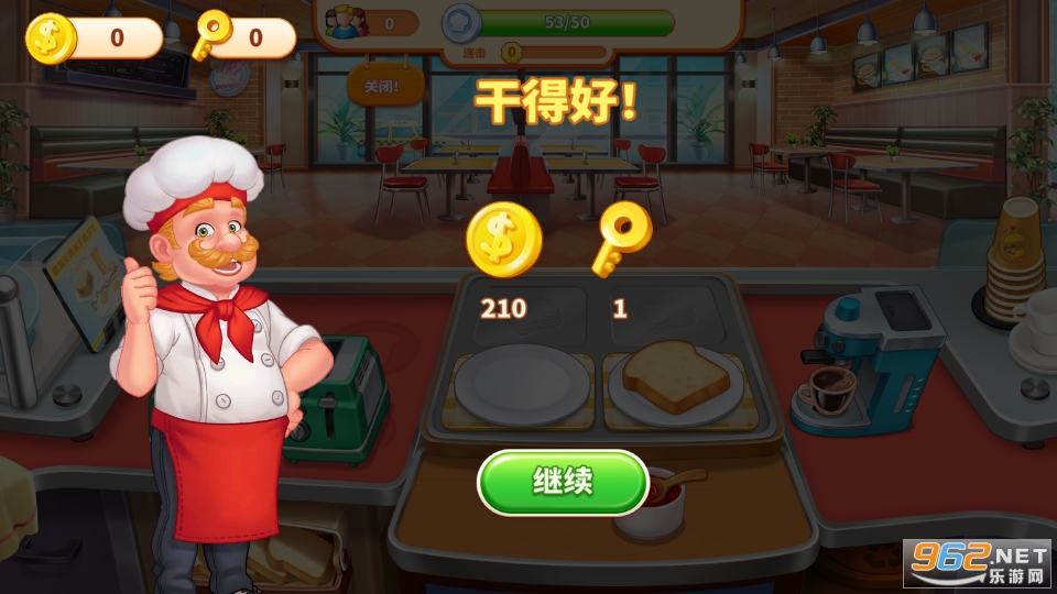 升级厨具,打造豪华后厨,获得更多钞票和成就。