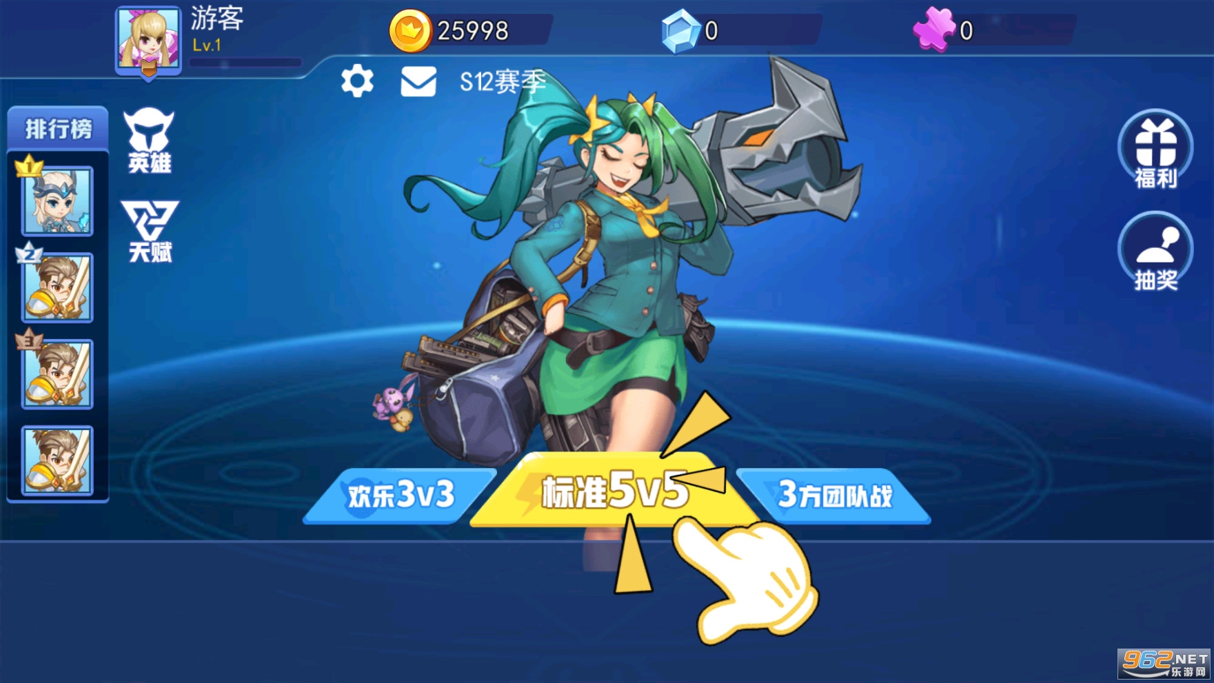 1.精彩刺激的5v5战斗比赛,游戏玩法多样化,选择英雄与国神战斗;