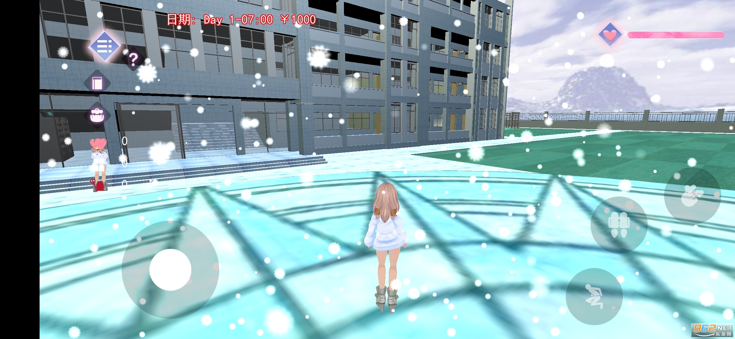 一款模拟真实校园的游戏,漫步于操场的雪地中,与学长亲密互动,让冬季的校园增添了一丝暖意,开启全新的冬季樱花校园新篇章吧,全新版本高中校园模拟游戏快来体验。
