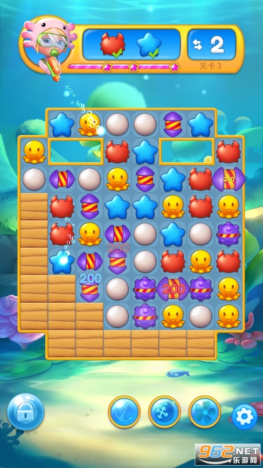 趣味的三消闯关游戏,游戏玩法简单,点击相同的三个或者以上的方块即可消除,玩家可以收集章鱼、螃蟹等众多的海洋生物,完成关卡目标,挑战一个个关卡,喜欢的朋友可以下载试试。