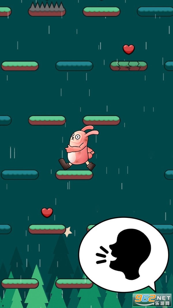 声控兔子人是一个让人上瘾的魔性声控游戏,你可以通过音量高低来控制兔子人的跳跃,和可爱的兔子人一起登上最高点吧!