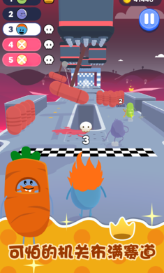 《蠢蠢的赛跑》是一款精彩欢快的跑酷闯关游戏,蠢蠢豆豆的魔性作死之旅即将开启,它们相互之间推搡冲关,想尽一切办法阻止你的对手前进,同时还要不断躲闪前面的障碍物和陷阱,你闯关时将要面对各种可怕的机关,大家一不小心就会被这些机关给碾碎,超级好玩的跑酷游戏一起来试试吧。