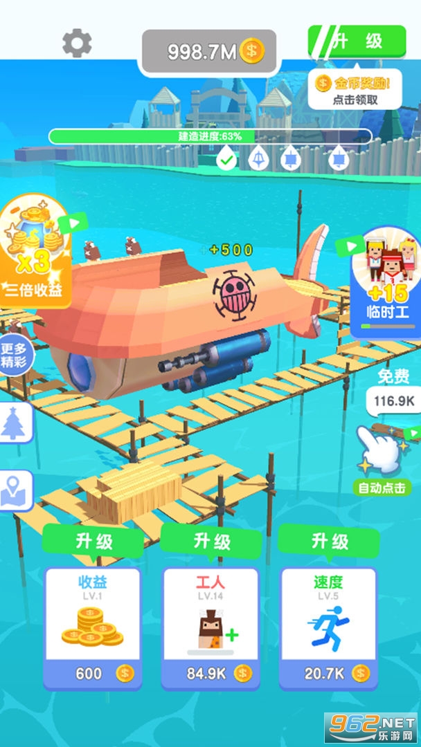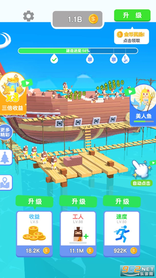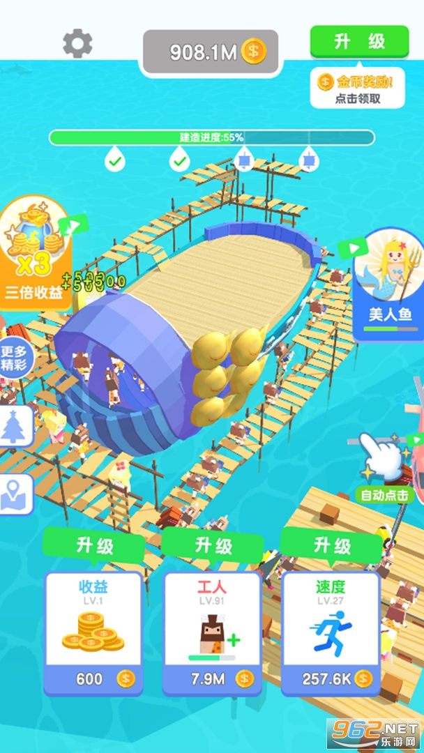 使用金币去聘请更多的工人,还要购买更多先进的设备,然后获得了金币就赶快提升,总之你要想尽一切办法提速,大家可以尝试着建造各种类型的船只,打造一个无与伦比的轮船商业帝国。