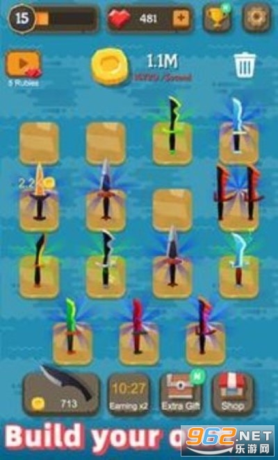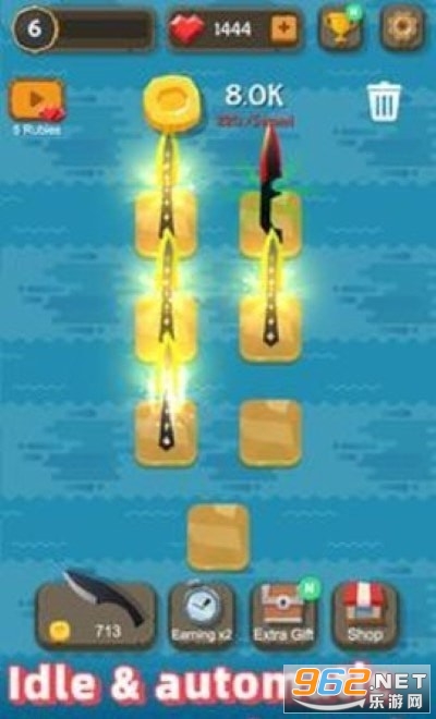 合并小刀是一款休闲娱乐类型游戏,画风魔性,简单的手指点击操作,这是一款全自动合成小刀挂机游戏,合并小刀让它们更闪亮更锋利更高效吸金,购入两把小刀快速开局,不断合成从小铁匠变身打造超凡品质小刀的锻造大师!下载解锁更多好玩的内容和全新的挑战。