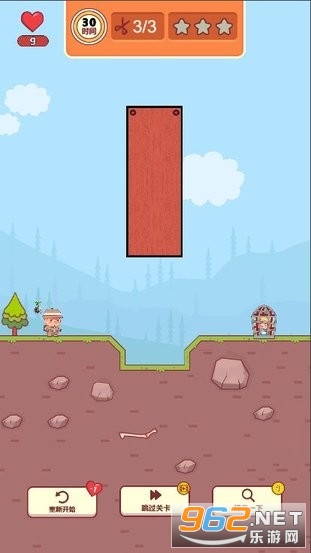 使用手指一画切掉木块,让切掉的木块搭成桥梁,让主角动起来顺利过去解救宝贝。
