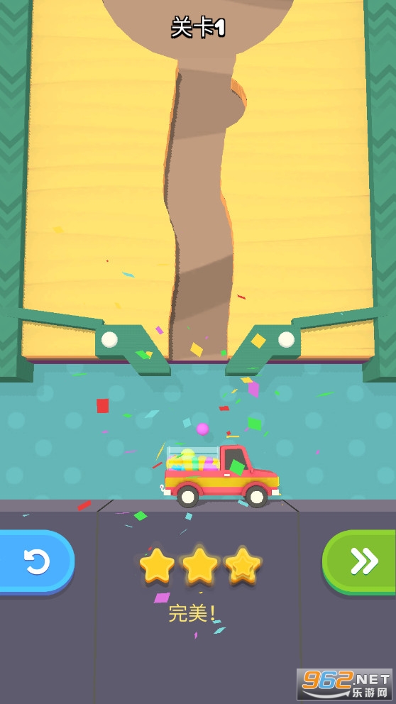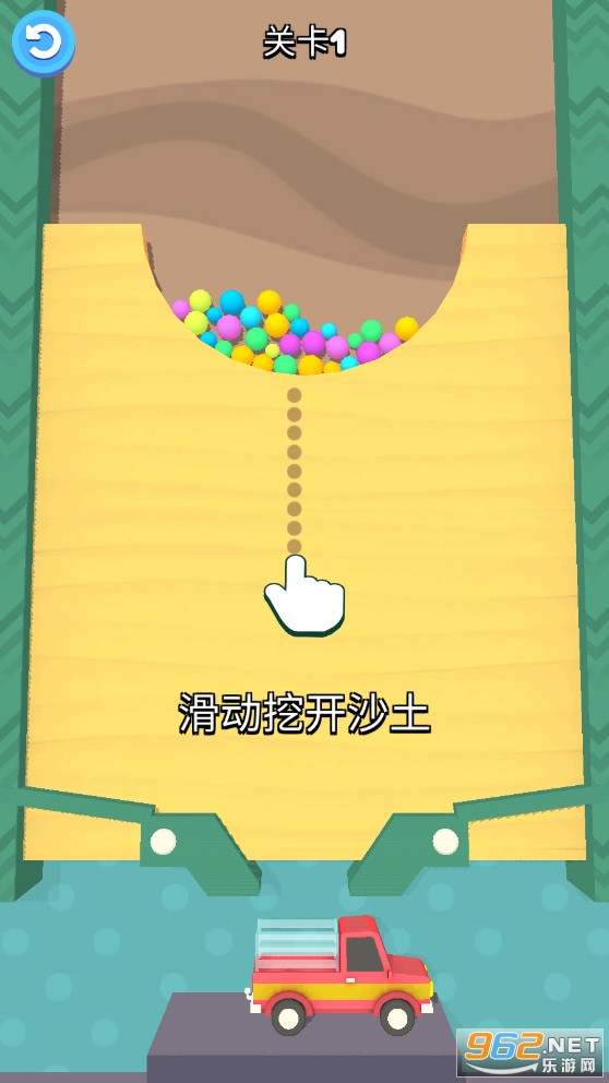 1、根据你挖出的隧道,球球会自动跟着隧道掉下来,直至落入货车的车厢当中。