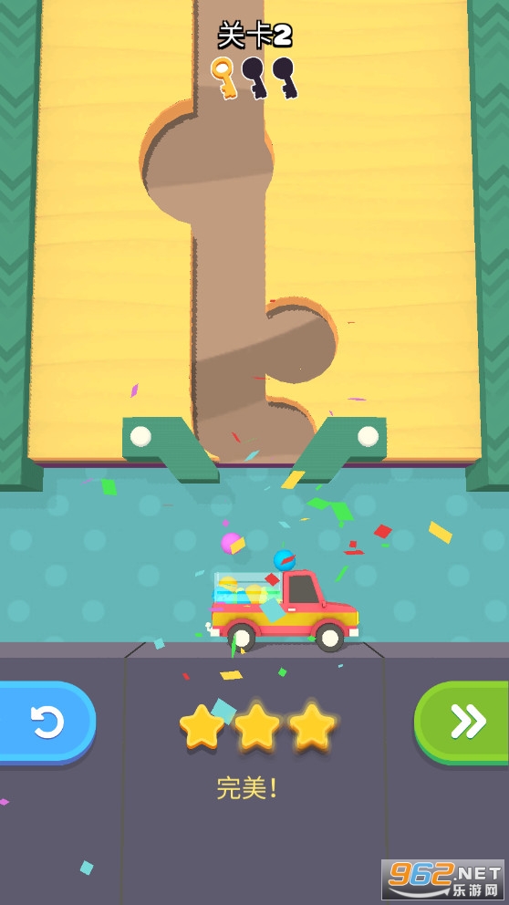 3、游戏的画风非常简洁,游戏的操作玩法也很简单,发挥自己的脑洞,让所有小球都装进车里。