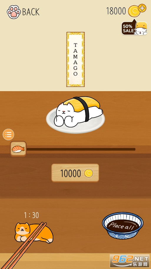 游戏以美食为题材,玩家需要将可爱的猫咪寿司一个接一个堆叠起来,保证平衡的同时尽可能挑战更高的记录。游戏画风卡通,玩法简单易上手,还可以解锁更多的寿司造型。