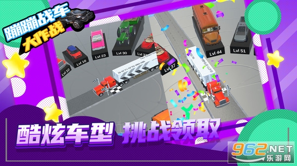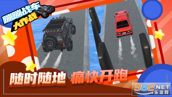 《蹦蹦战车大作战游戏》是一款画面精致的发泄破坏类休闲竞技手游,游戏中玩家将控制一辆汽车在道路上行驶,当然这次不再是竞速比赛,而是相互碰撞,就像碰碰车一样去撞击其他的汽车,将对方撞毁,撞落下平台,获得胜利,游戏上架了众多的汽车,可以解锁进行体验。