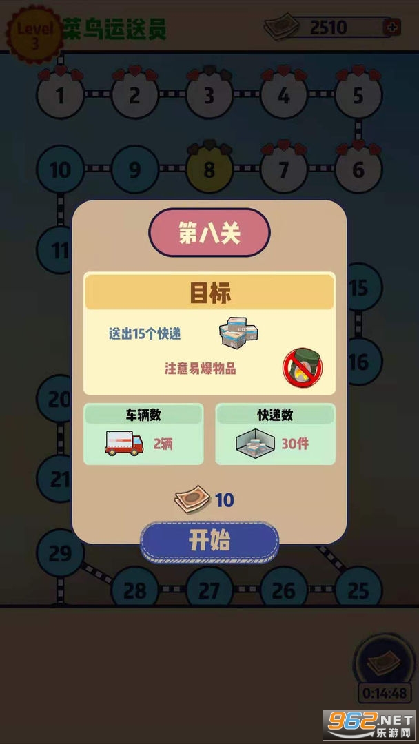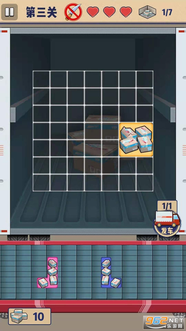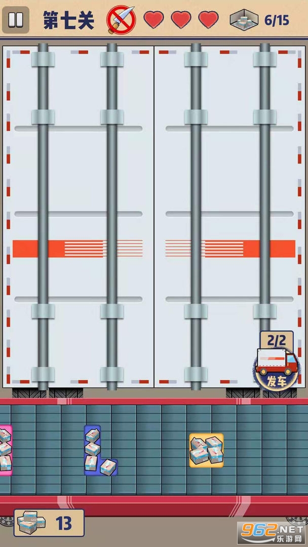 3、根据关卡要求,将足够数量的货物放在货车上,小心危险物品。