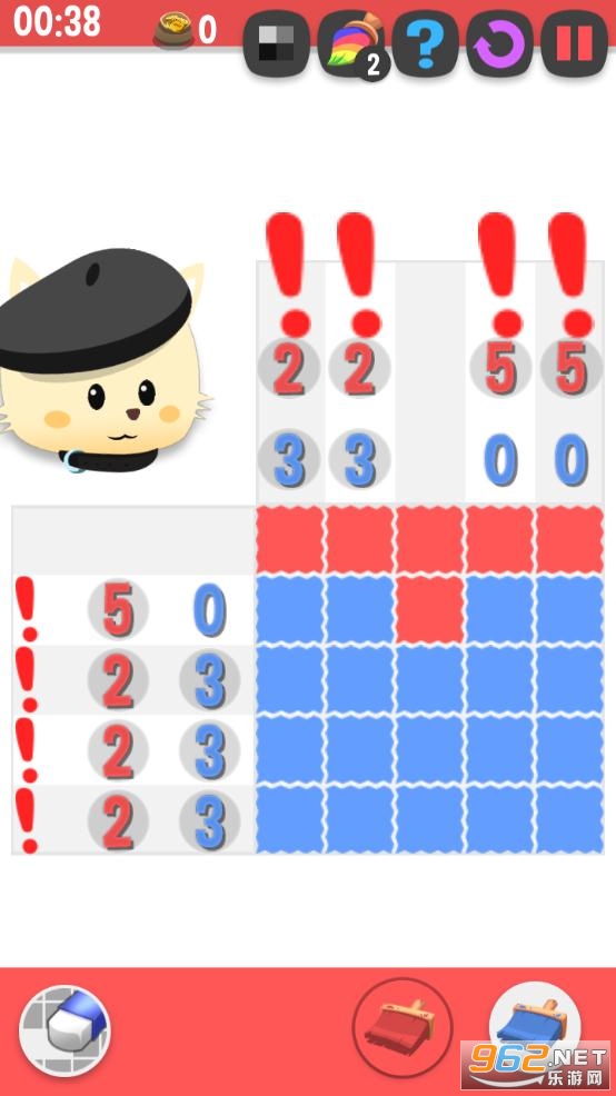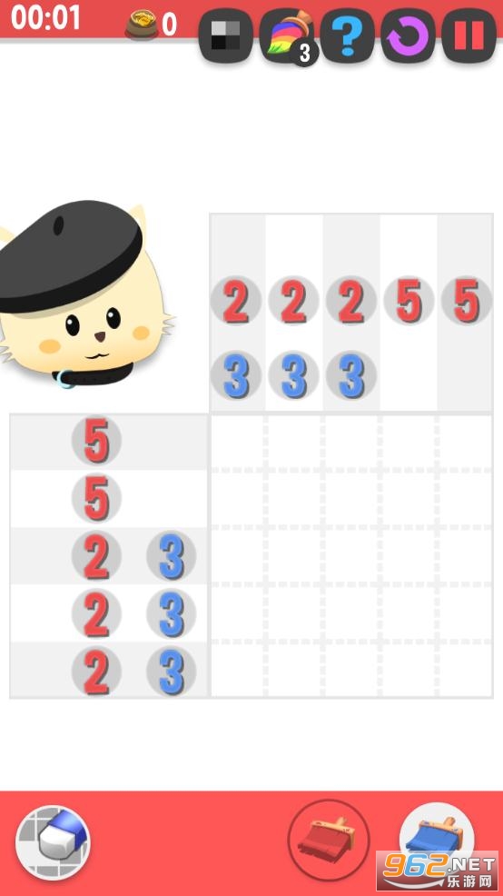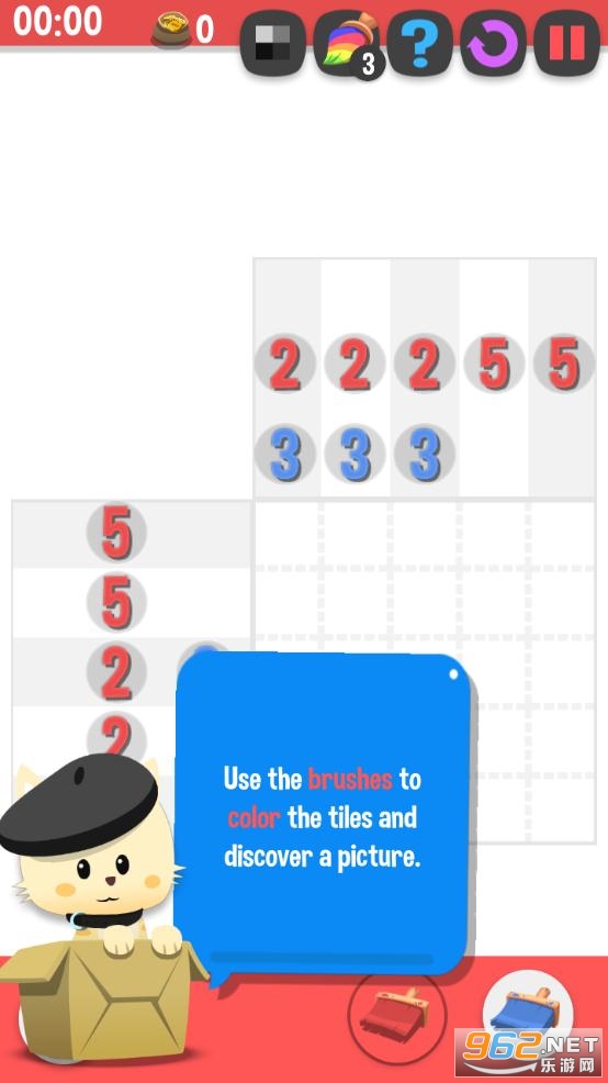 玩家根据方块周围给出的数字,将不同颜色的刷子涂在正确的方格里,当所有的空格都被涂上色彩后,也就代表着你完成了一副可爱的图画哦!