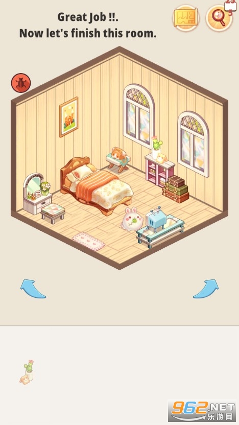 在拼图的时候多动动脑子,有时候还需要转换一个视角,将整个房间旋转一下,再去拖动里面的物品,只有完美契合了才能继续下一步拼图任务,有时候找不到还能使用提示卡获取提示信息。
