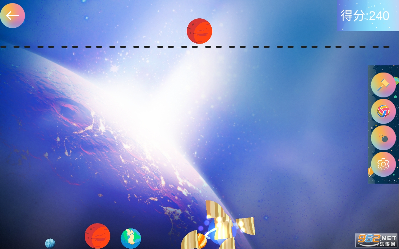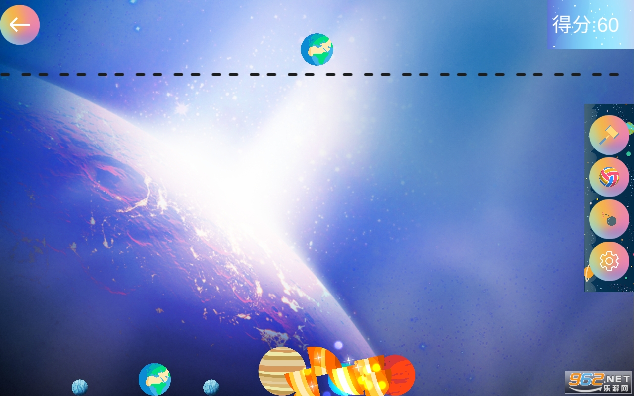 3.简单可爱的卡通品质,里面的星球坠落可以由玩家控制,平台上可以识别任何星系。