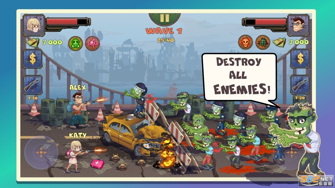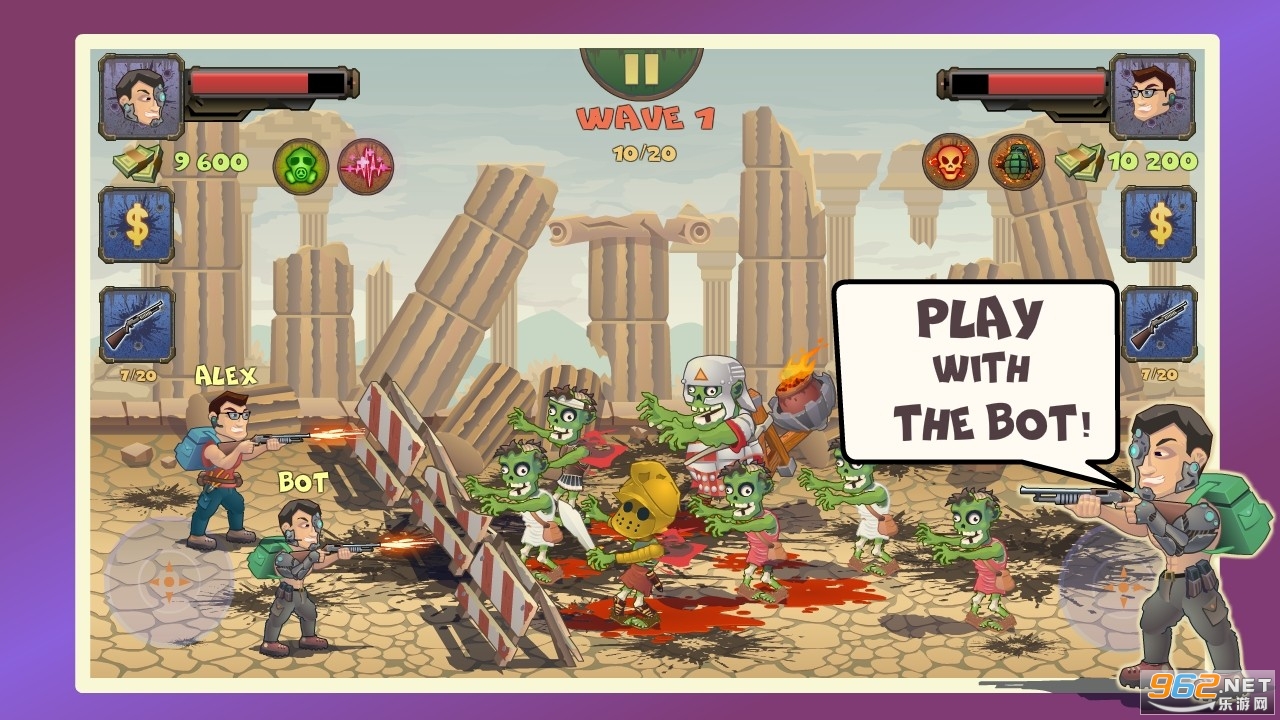 精彩的双人打僵尸游戏,能为你带来从来都没有过的射击冒险体验,一定要与你的小伙伴配合好,两人分工明确才能更轻松的闯关,随着不断的闯关关卡难度也会提升,僵尸的攻击力会变强,机关陷阱也会更独特。