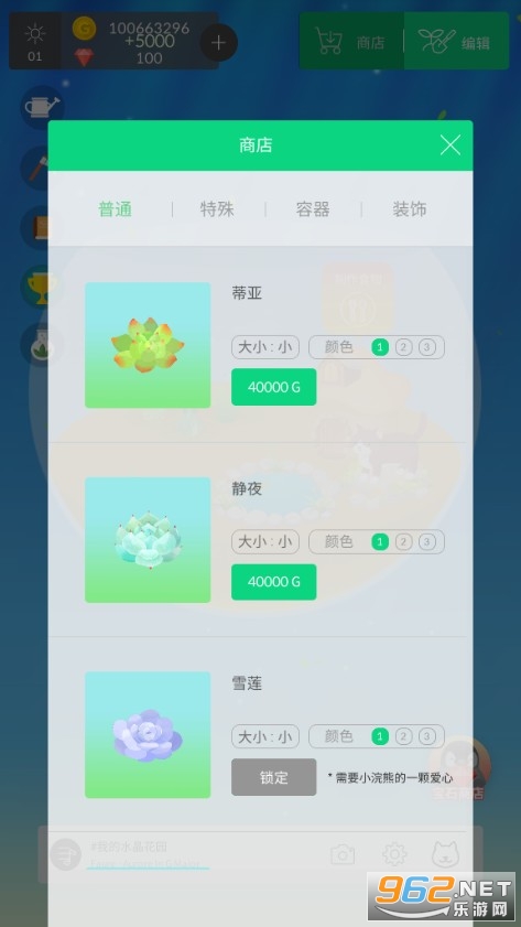《我的小小花园 My Little Terrarium》这是一款有趣的休闲娱乐游戏,游戏中培养玻璃瓶中的小花园,与动物朋友见面!把各种各样的植物自由地摆放起来,创造出属于自己的花园。请倾听动物朋友们的苦恼,接受特别的礼物。听着植物喜欢的古典音乐,安慰疲惫的心。别忘了每天给植物浇水!游戏内金币为无限!