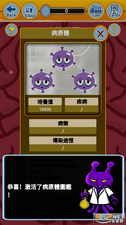 培养病菌 - 获得图鉴 - 升级培养瓶 - 培养更稀有病菌