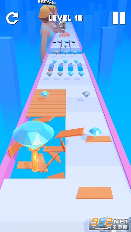 1.不断变化的游戏场景,玩家需要控制钻戒不掉落,左右滚动。