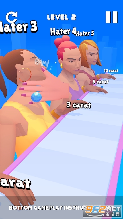 2.用指尖控制滚动的钻戒,沿途收集同色钻戒,不断挑战新任务。