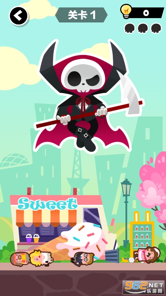 挺好玩的休闲闯关游戏,里面拥有超多的关卡让大家去挑战,简单的操作方式,丰富的场景里面隐藏着各种各样的道具和机关,玩家需要合理的使用,灵活的推理,才能消灭所有人,完成死神的使命!