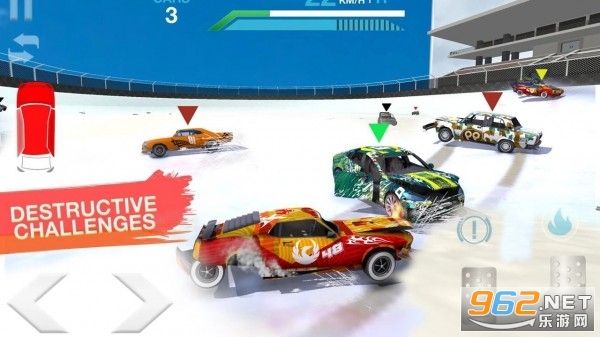 2、畅快的冲撞你的对手,这里拥有更多的赛车在一同竞技,你必须生存到最后;