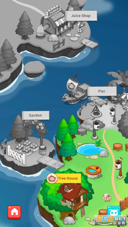 一款有趣的休闲建设模拟游戏,游戏中你将化身一只可爱的小猴子在荒岛上进行建设,首先你将建设自己的树屋,通过消除关卡来获得新的伙伴同时获得资源制作不同的家具,一步步的将荒岛建设成为我的岛屿!