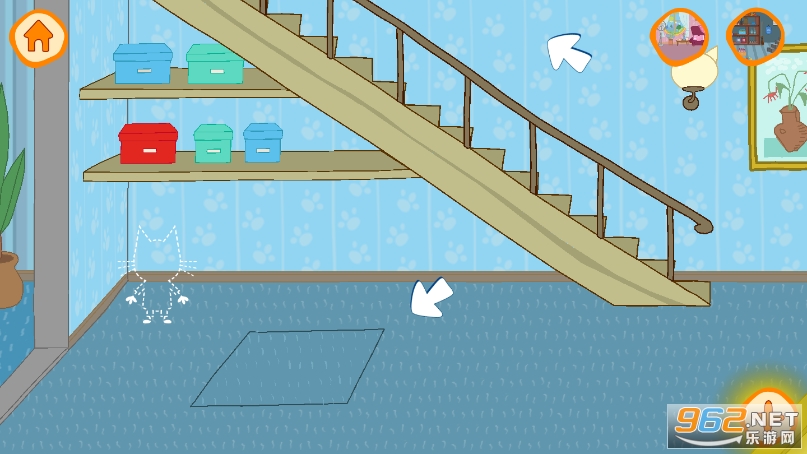 《KidECatsdollhouse游戏》是一款以俄罗斯动画片绮奇猫为主角的儿童休闲益智游戏,小朋友们将来到 Kid-E-Cats的家里,在地下室,爸妈的办公室,卧室,厨房,客厅,阁楼里面自由自在的模拟你想做的事情,可以做饭,玩耍,听故事,玩游戏,自由的探索房间的秘密,满足你所有的想象力!