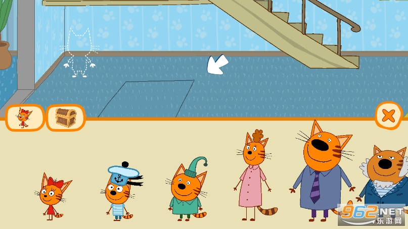 我们为您建造了四层楼的乐趣——爸爸的办公室、小猫的卧室、厨房、客厅、妈妈的办公室、地下室、阁楼练习室等等——在那里你可以和你最喜欢的角色一起玩耍和玩耍 . 仔细看! 每个房间都充满了隐藏的惊喜。 偷看壁橱和梳妆台、冰箱和食品储藏室。 你可以调查任何你想要的。 给小猫穿上不同的衣服,为它们想游戏和故事,录制自己的卡通片并与世界各地的朋友分享。