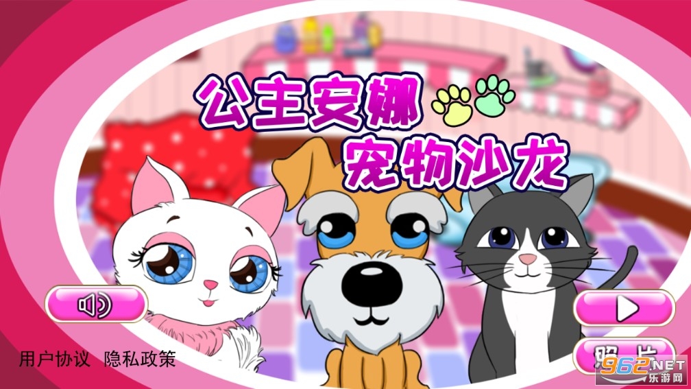 《公主安娜宠物沙龙》是一款温馨的宠物养成游戏,去照顾可爱呆萌的小宠物吧,从三只宠物中选择你喜欢的宠物,先给宠物洗个澡,然后用毛巾擦干净,用吹风机吹干,然后就是宠物装扮过程了,从上到下认真去装扮,一切都完成之后就可以给精致的宠物拍张照了,记得保存照片哦。