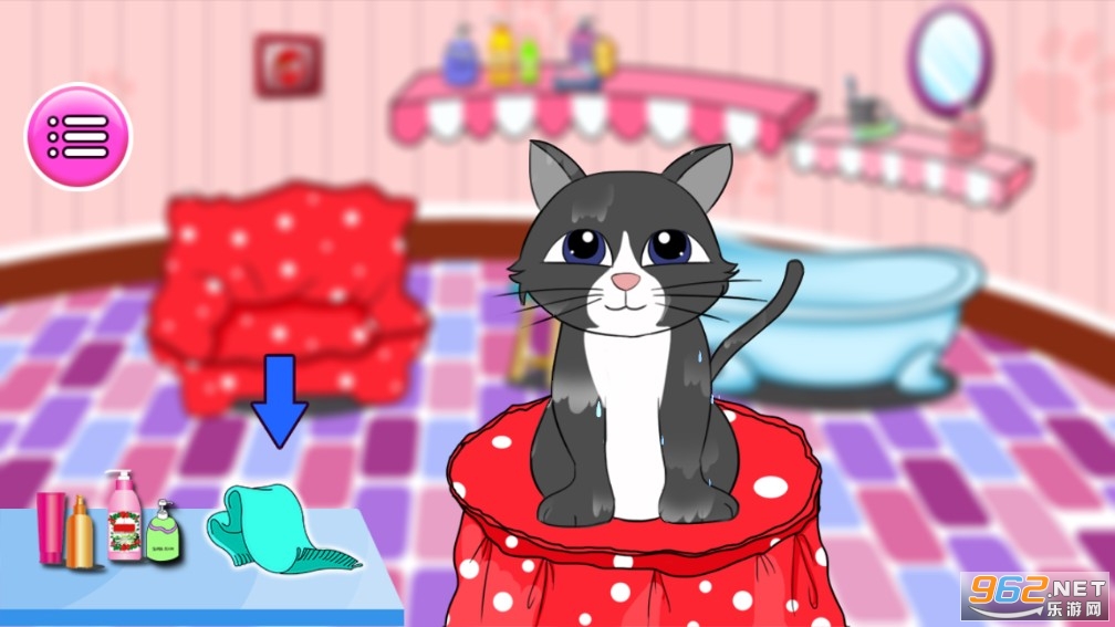 2、可爱的宠物狗和宠物猫们在等你,希望你能好好陪它们玩耍,给宠物们洗洗澡换装。