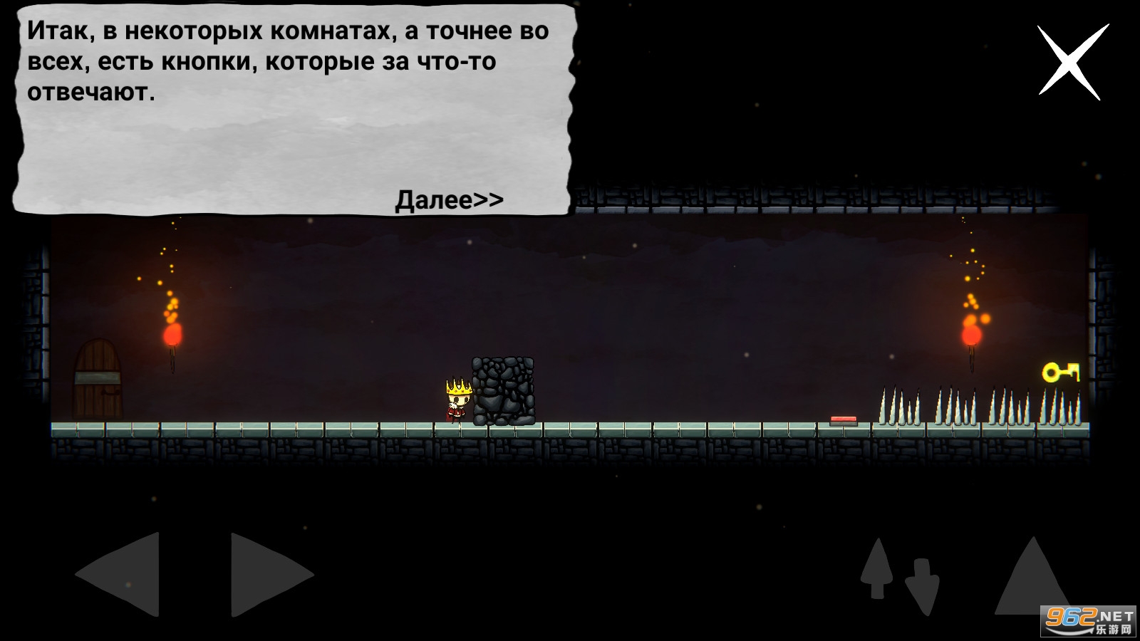 使用你的国王角色推动关卡内的石头进行闯关任务进行,可以利用它去站在高处拿到地牢关卡的钥匙,也可以利用它去触发机关躲避伤害,总之一定要找好它的角度如果推过头了,就没有办法推回来的!