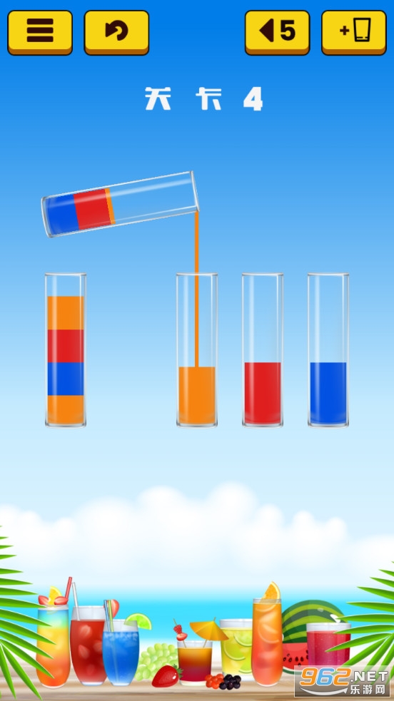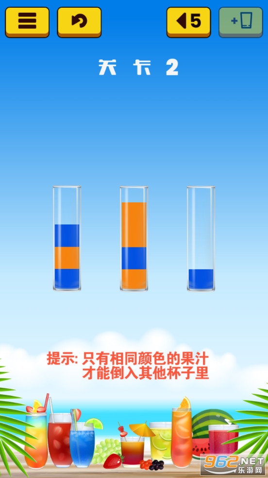 简单的排序游戏,类似水排序等游戏,本款游戏加入的是果汁,玩家需要将不同的果汁分离开,让相同的果汁在一起,合理的相互倾倒,最后整理整齐,喜欢的朋友可以下载试试。