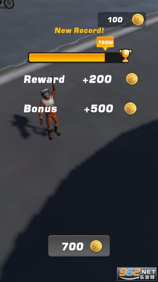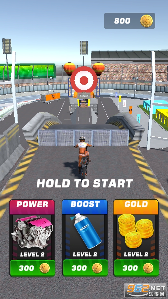 在游戏中驾驶着摩托完成挑战,玩法略微显得有些单一,玩家只需要控制好落点,尽量的更准更远就可以了,要不断的对摩托车的性能进行升级哦!
