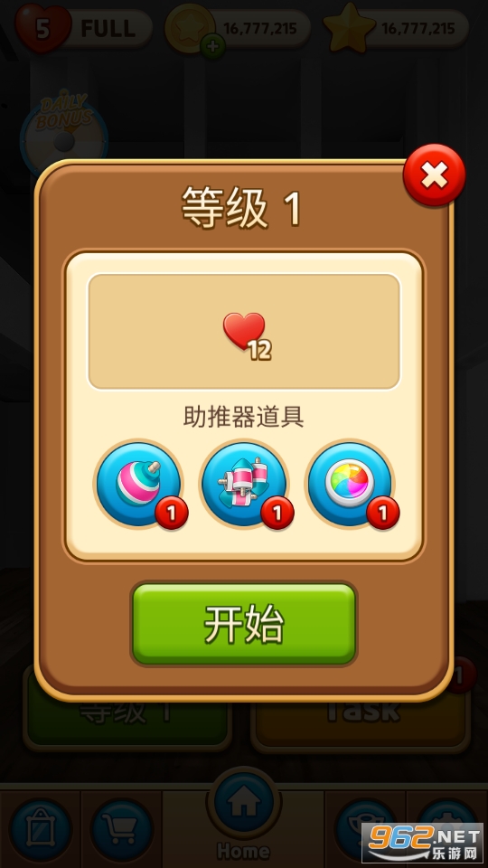 匹配4个方块创建一个特殊的方块,可以炸掉一行或一列的所有方块