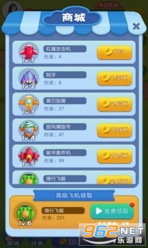 3、不断升级和合成你的战机,获得更高水平的战机,这是弹幕射击和塔防的完美结合。