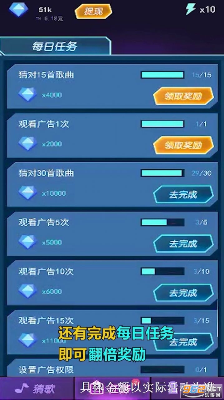 1、趣味猜歌,最新挑战,这里会实时更新不同的曲库,各种曲种都会有着不同的选择。