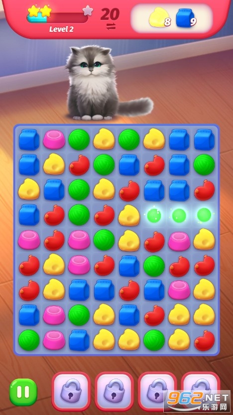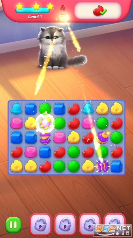 可爱呆萌元素爆棚的消除游戏,将萌萌的猫咪元素加入进来,我们消除闯关所有的努力都是为了这只小猫咪,去帮助猫咪获得更多美味猫粮,棒它购买更多好玩的玩具,相信大家可以在这款好玩的消除游戏中度过一段美好的时光。