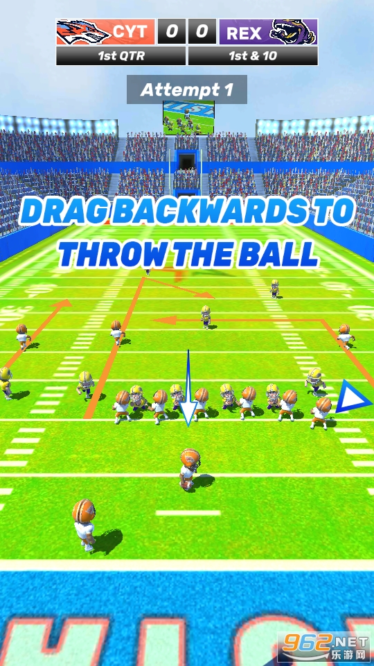 以橄榄球为核心,和你的队员一起合作取得比赛的胜利就可以了。玩法非常丰富,你需要对足球进行投射,或者躲避对手带球进入指定的地方,快来下载吧!