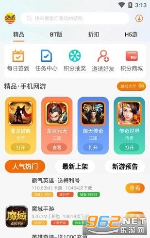 一款专门为喜欢玩游戏的用户打造的游戏平台。在这里可以找到各种各样热门的游戏,还可以领取大量的游戏礼包,让你在游戏当中也能更具备实力。平台上用户还可以领取一定的福利折扣,如果你想要充值的话也能更省钱,平台和各大游戏厂商都有合作,让你能够畅玩无压力。