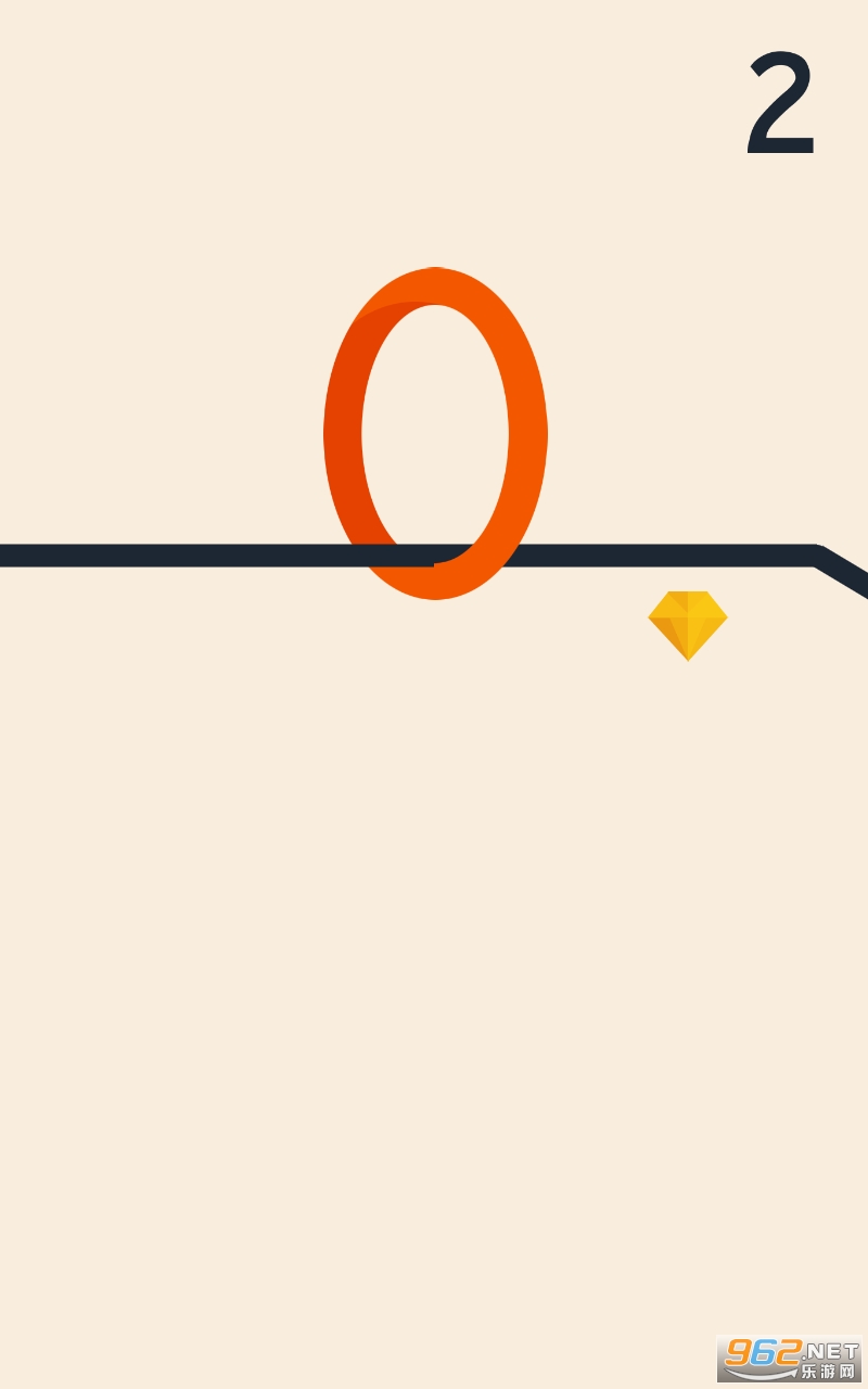 1、点击屏幕控制圆环在曲折的铁杆上前进,圆环会随着点击向上跳跃。