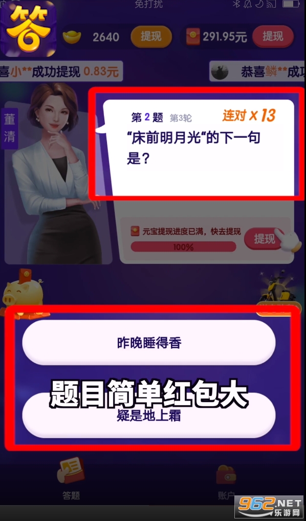 2、完成头脑操作进行答题,发动脑力解决更多冒险拿到惊喜红包。