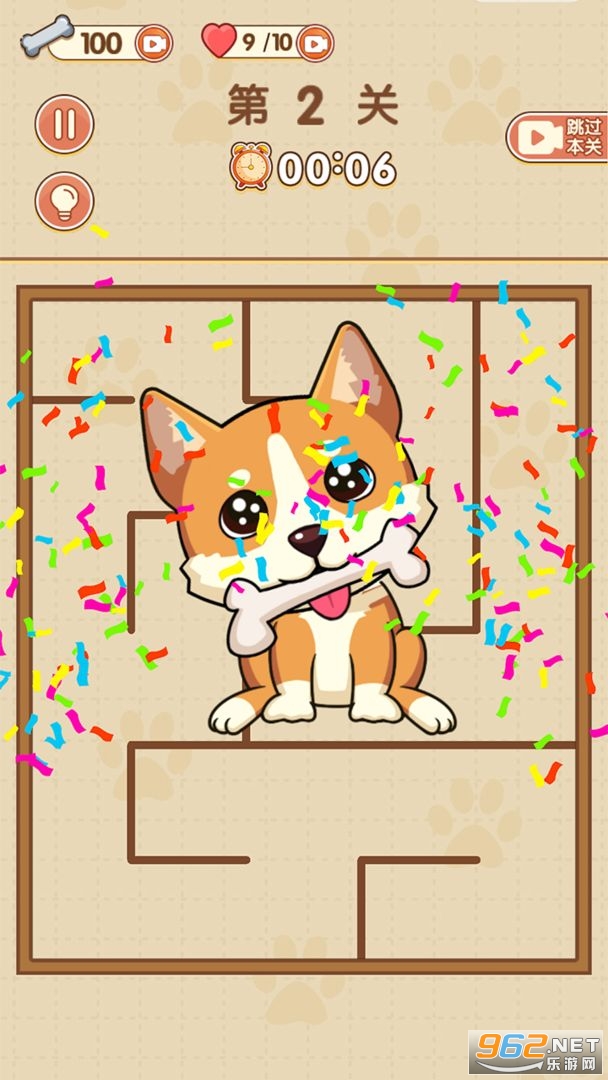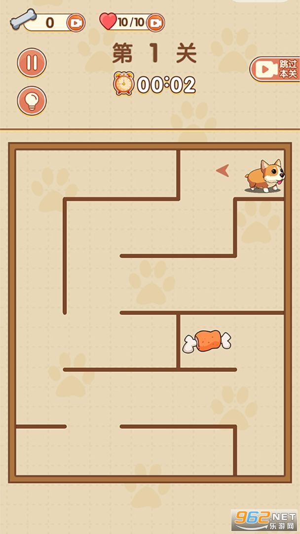 一款画面十分简约的卡通风迷宫益智游戏,尽量更快的完成关卡挑战,关卡开启之后我们就要快速进入到状态,用手指在上面轻轻滑动,大致的画出最佳路线帮助自己离开这个迷宫,并帮助小狗吃到骨头。
