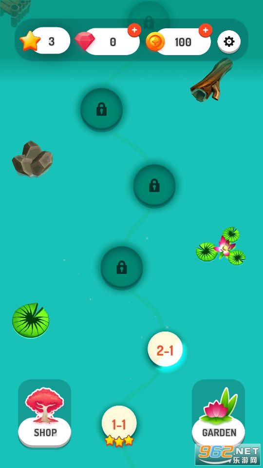 在规定的步数内完成挑战就可以了,仔细的进行思考,步数用的越少得分就会越高,画面也很精致,还能够一步步的解锁你的花园,玩起来很有趣。