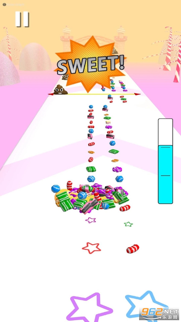粘液糖果模拟器是一款易让人上瘾的闯关跑酷类游戏,我们的目标就是不断收集跑道上的糖果,五颜六色的糖果等你来收集,每收集得到一种糖果还能为你累加一定的积分,看看最终的积分会是多少吧。