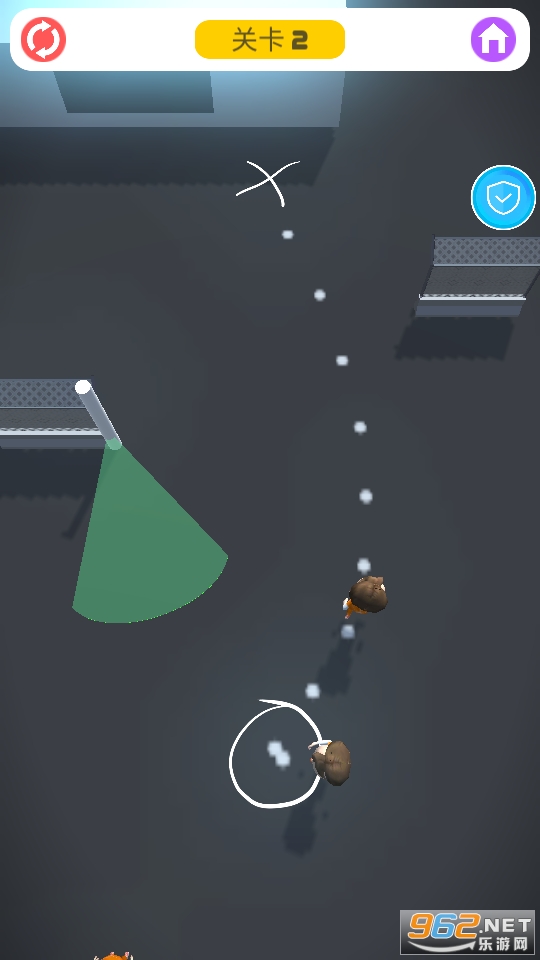 2、成功躲避障碍使三个角色成功逃出则视为闯关成,三个角色中有一个被探照灯照到则视为闯关失败,需要重新制定路线玩家会根据游戏关卡不同的难度进行通关,