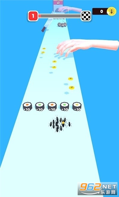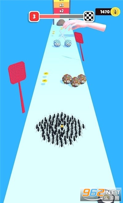 蚂蚁军团跑酷是一款好玩的休闲闯关游戏,玩家在游戏中要通过不断的进行奔跑来完成任务,在奔跑的过程中你要小心各种障碍物,同时你也要小心人类的手臂,但是你也可以收集各种金币来帮助你更好的进行游玩