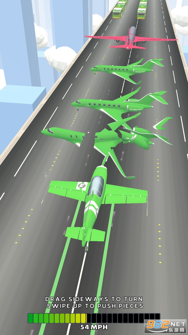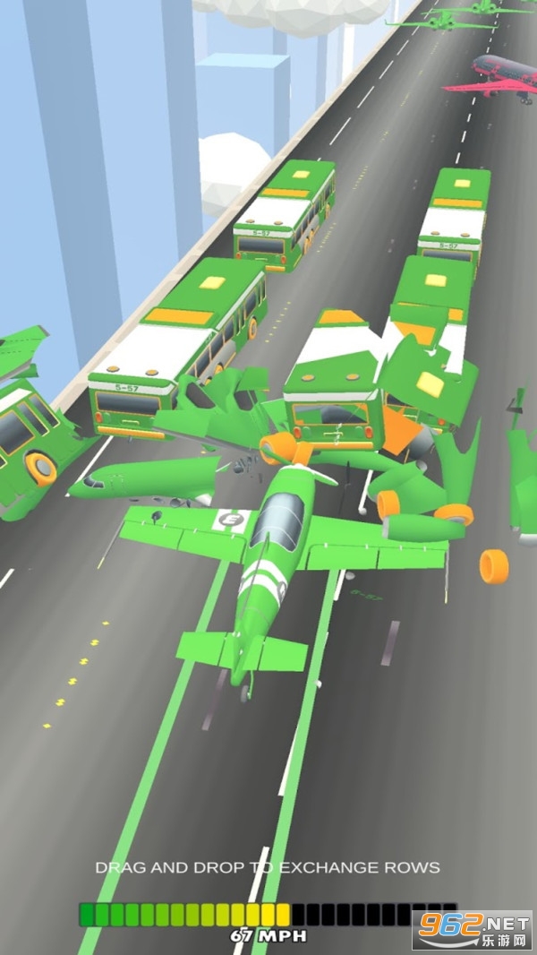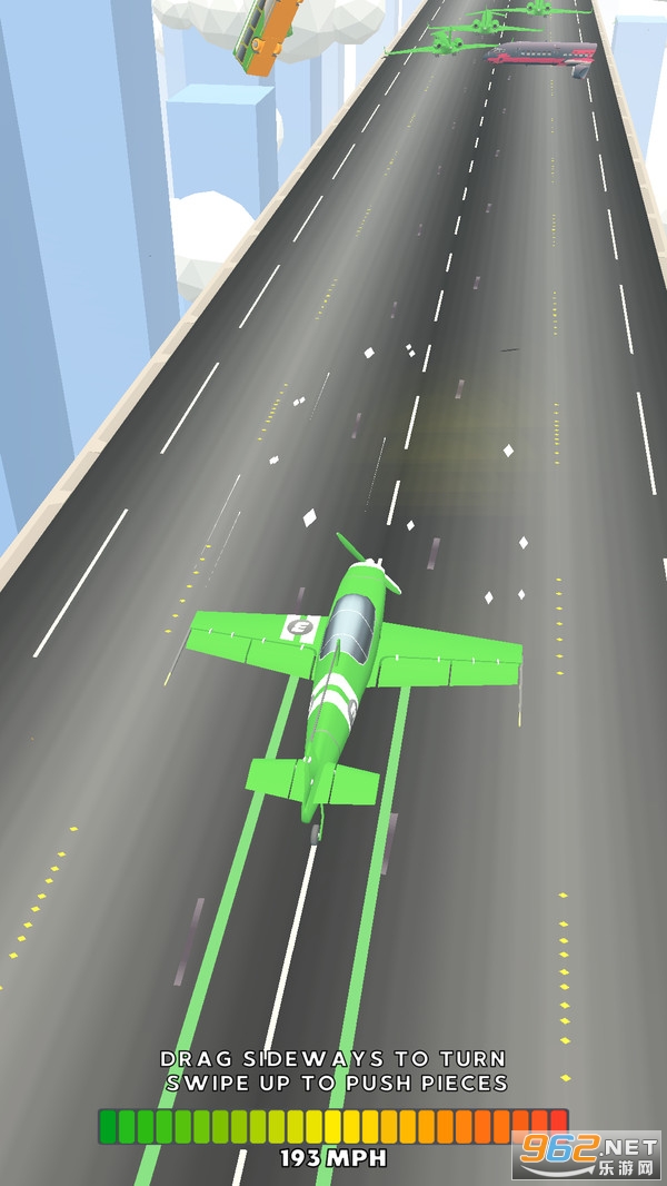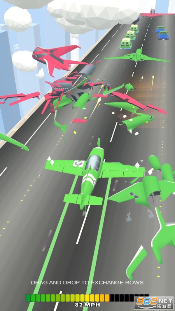 撞上相同颜色的飞机和汽车以粉碎它们。收集碎片并向上滑动以将它们扔向其他颜色平面。
