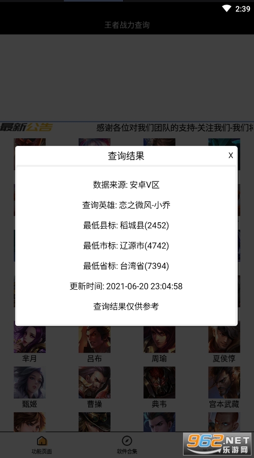 王者战力查询助手,一键查询王者英雄在全国县、市、省级最低战力排行,新增修改战区功能,轻轻松松去拿标。