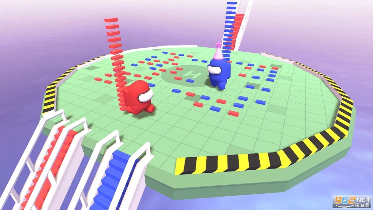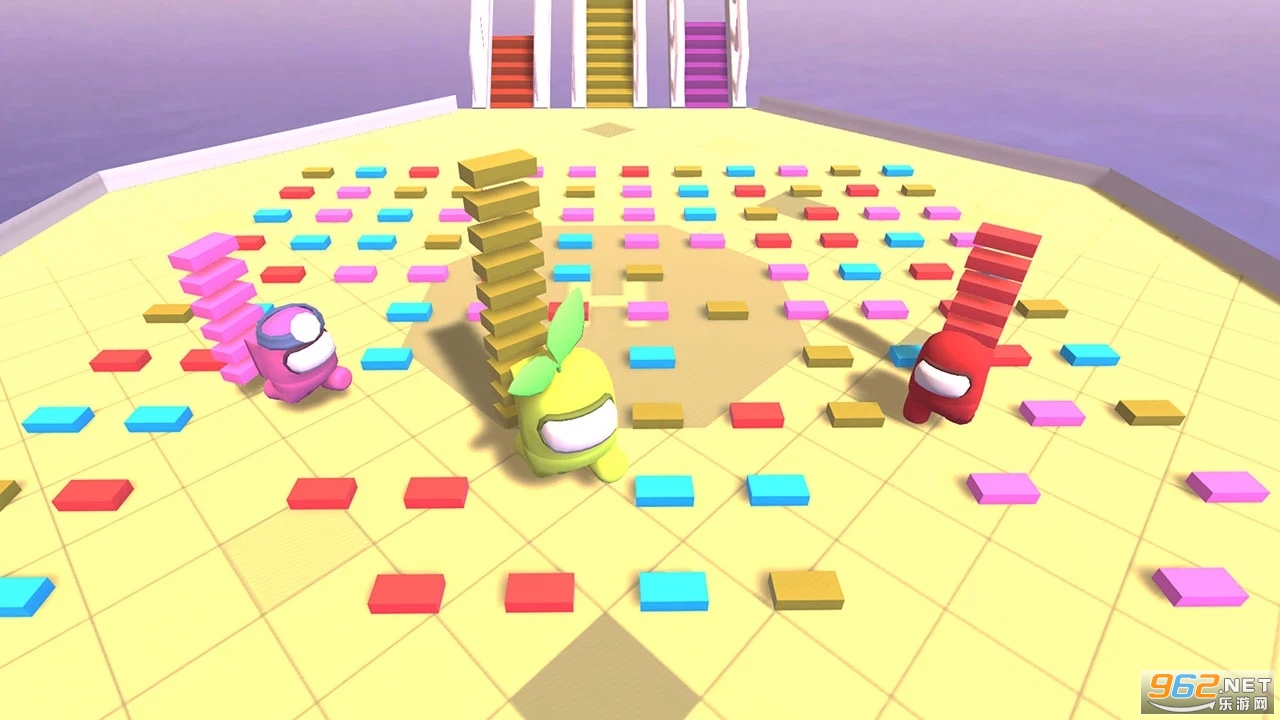 2、桥梁材料生成在地面上,拿起正确颜色的瓷砖,小心,你应该躲避比你强大的对手。