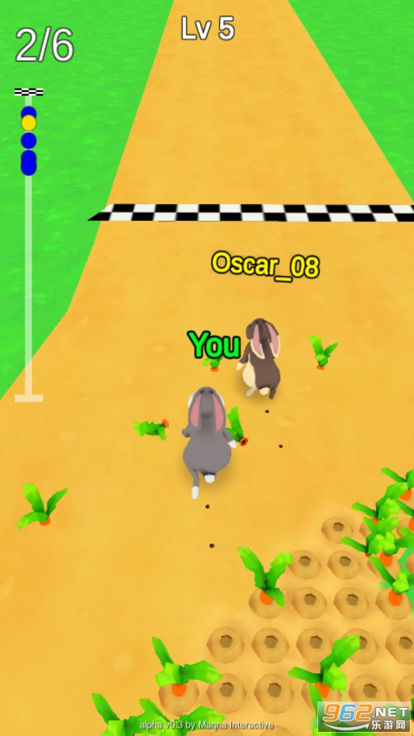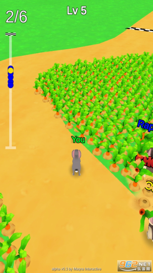 《兔子农场奔跑》是一款趣味十足的休闲奔跑闯关游戏,这些兔子一个个身手敏捷,都是跑步高手,但是有些兔子非常贪吃,喜欢在跑步比赛的时候去吃旁边的胡萝卜,吃的胡萝卜越多,身体就会越胖,向前奔跑的速度自然也就下降了,所以不会取得好的名次,大家要想取得更好的名次,就要控制好自己的兔子不要偏离跑道,顺利抵达终点。